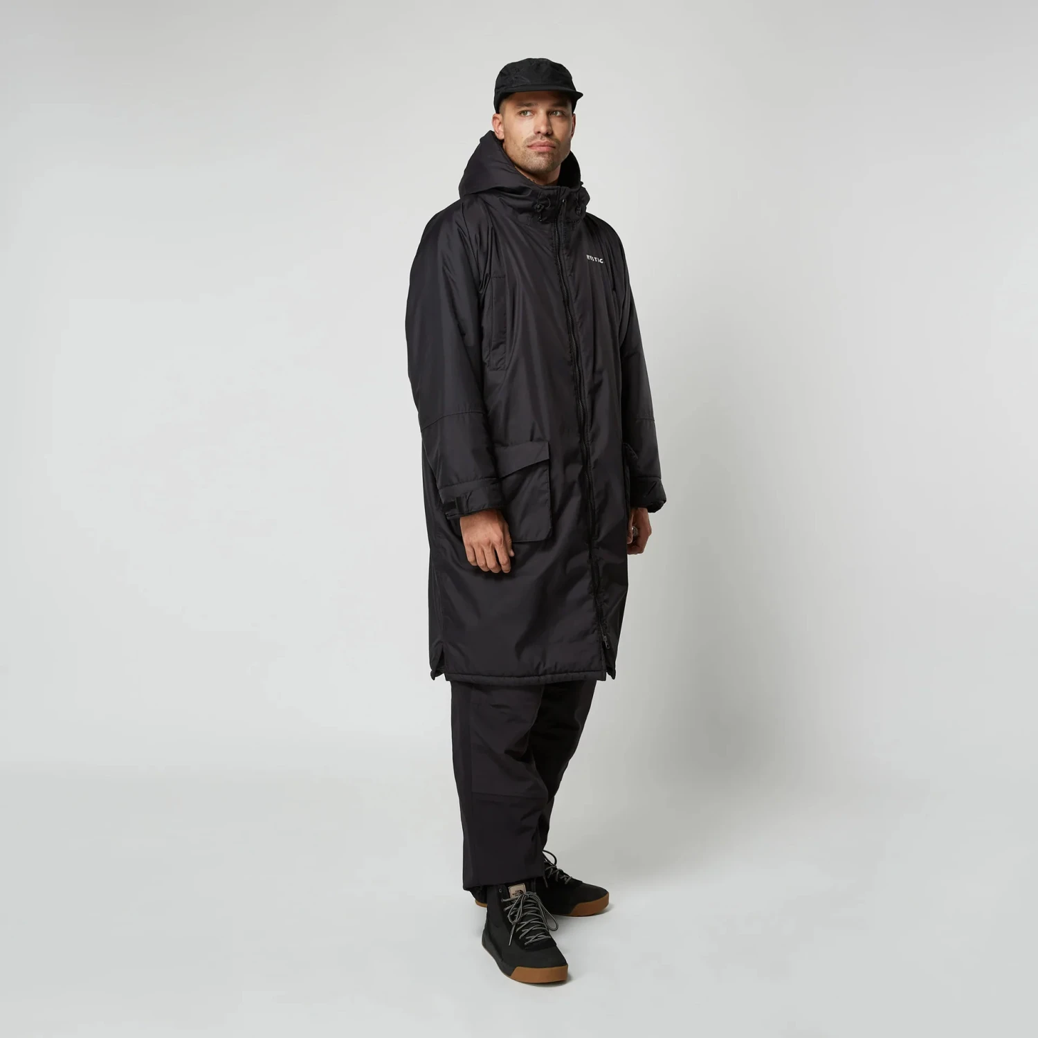 - Fidlock waterproof pocket in wearer’s left hand pocket